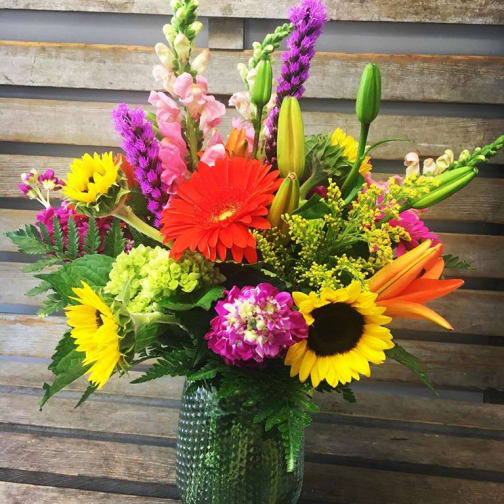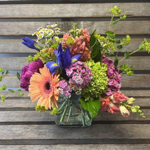 Price: $149.95Bright designer's choice fresh flower arrangement