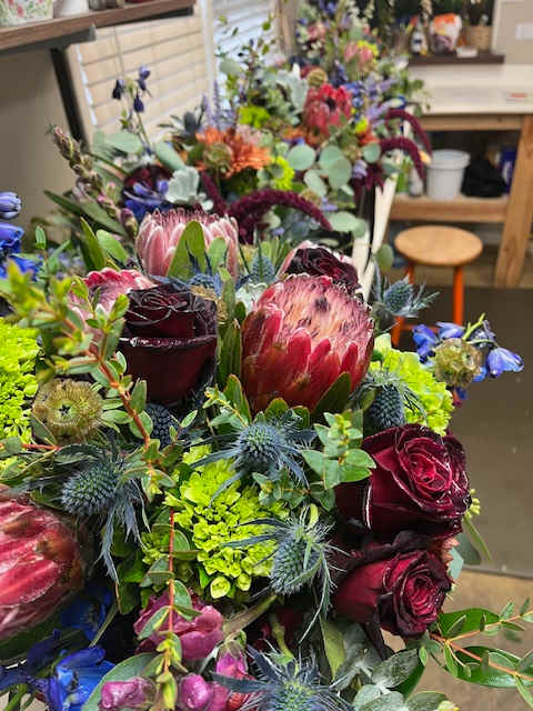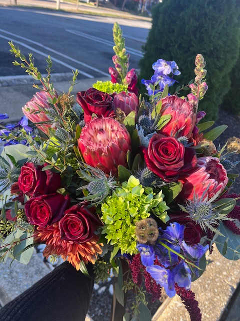 When placing an order please provide a cell phone number for the recipient. If weather is bad we will call to arrange delivery time. It may be too cold to leave anything outside. Call the shop if you need help ordering. Thanks for your support.